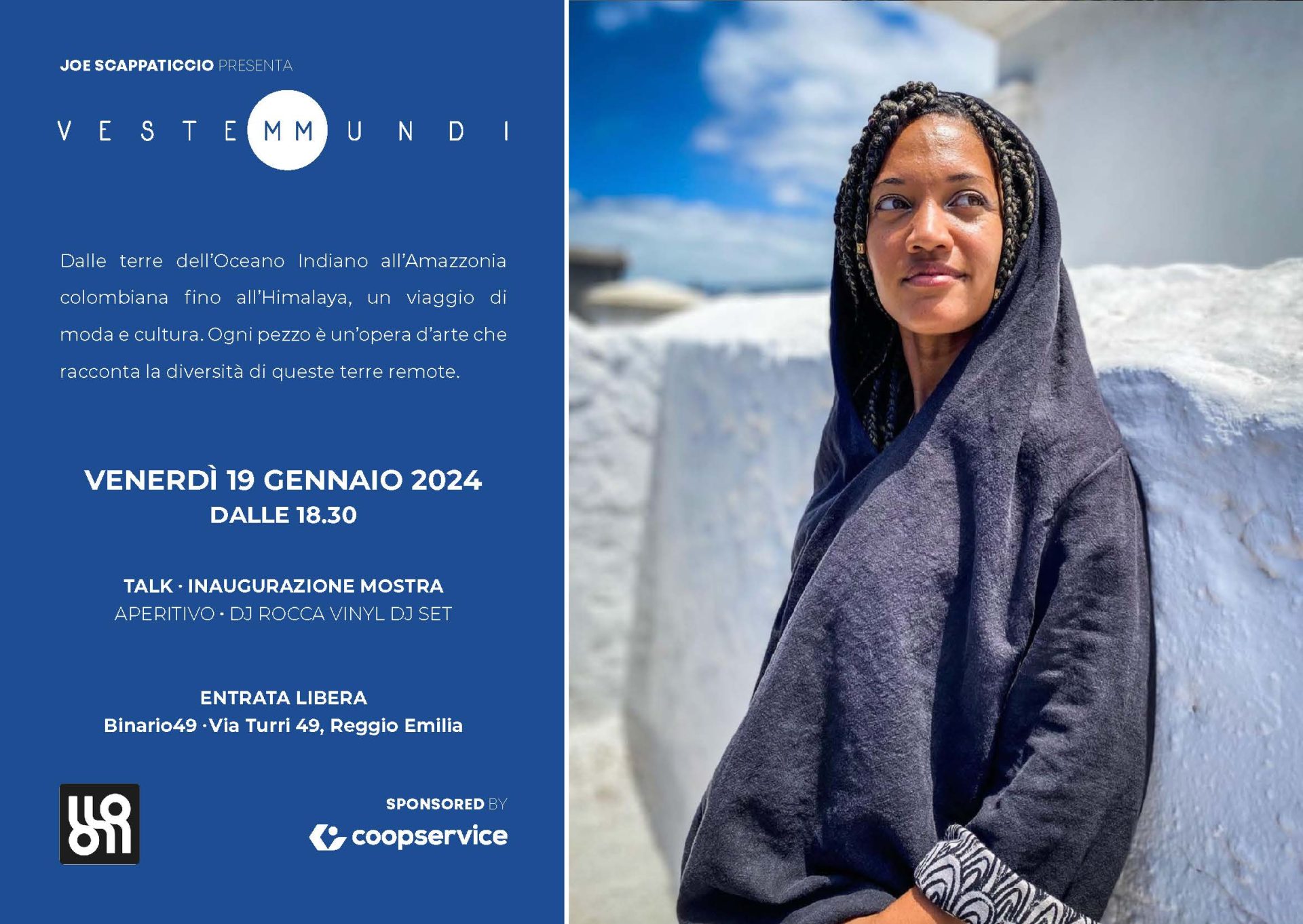Reggio Emilia, 18 gennaio 2024 – Coopservice è partner e sponsor di VesteM Mundi, un progetto nato dall’incontro di Roberto “Joe” Scappaticcio con la cooperativa e Binario49. Cuore del progetto è la mostra che verrà inaugurato venerdì 19 gennaio alle 18.30, nei locali di Binario49 (via Turri 49 – Reggio Emilia) e che sarà aperta fino al 17 […]