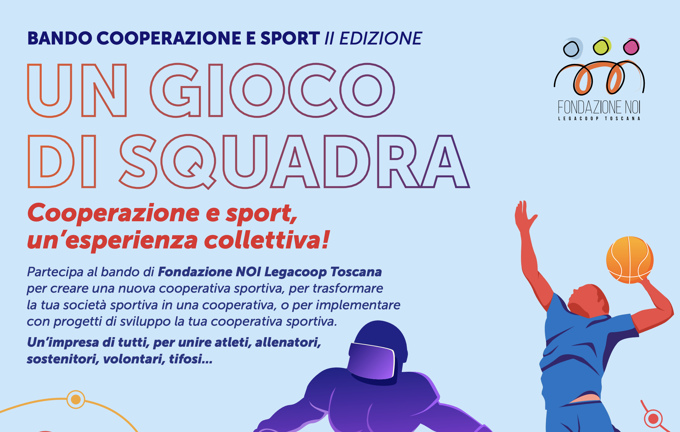 Firenze, 3 dicembre 2025 – Torna “Cooperazione e Sport”, il bando promosso da Fondazione Noi Legacoop Toscana per sostenere la nascita e la crescita della nuova cooperazione sportiva in Toscana, è rivolto a: